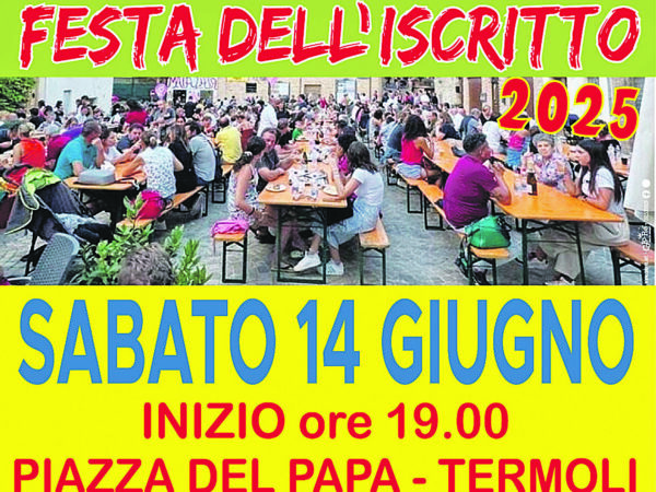 Sarà Piazza del Papa, nel cuore di Termoli, ad accogliere stasera, sabato 14 giugno 2025, alle ore 19, la nuova edizione della Festa dell’Iscritto, promossa da Anteas Molise e Fnp-Cisl Pensionati Abruzzo-Molise, con il patrocinio del Comune di Termoli. L’evento si propone come un momento di festa popolare, ma soprattutto di incontro e partecipazione attiva, […]