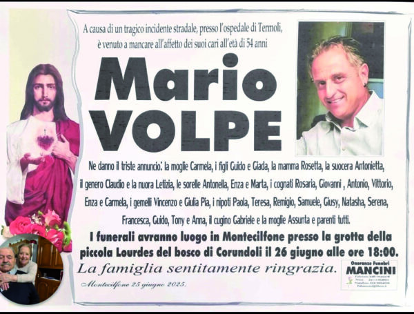 Non ce l’ha fatta Mario Volpe, il 54enne rimasto gravemente ferito nello scontro frontale avvenuto giovedì 19 giugno lungo la Bifernina, nel territorio di Larino. L’uomo è deceduto ieri all’ospedale San Timoteo di Termoli, dove era ricoverato in seguito a un delicato intervento chirurgico. La notizia della sua morte ha profondamente scosso le comunità di […]