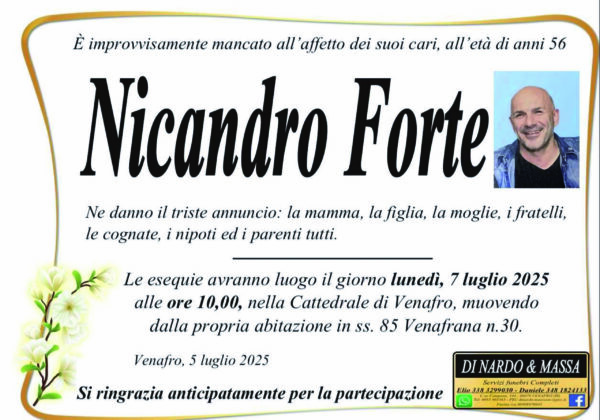 Tutta la comunità venafrana sotto shock per la scomparsa di Nicandro Forte, il 56enne stroncato da un malore sabato pomeriggio lungo la statale 158, in territorio di Montaquila, mentre era in sella alla sua bici. L’uomo si è accasciato a terra vicino alla casa di cura Salubritas e sarebbe stato soccorso dagli operatori della struttura, […]