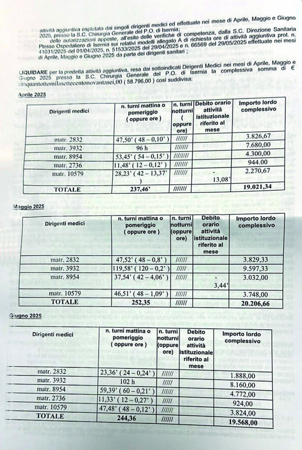Due pesi e due misure, con la bilancia che sembra pendere sempre dalla stessa parte: quella dell’ospedale Veneziale di Isernia. È quanto emerge dall’analisi delle delibere Asrem relative alle cosiddette prestazioni aggiuntive, ovvero le ore di lavoro straordinario che i dirigenti medici svolgono oltre il normale orario contrattuale per coprire turni e garantire la continuità […]