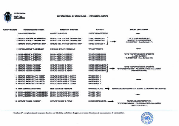 L’Ufficio elettorale di Isernia ha diffuso la corretta ubicazione dei seggi, che pubblichiamo a corredo di questo articolo aderendo all’invito a consentirne la più ampia divulgazione e conoscenza da parte dei cittadini.